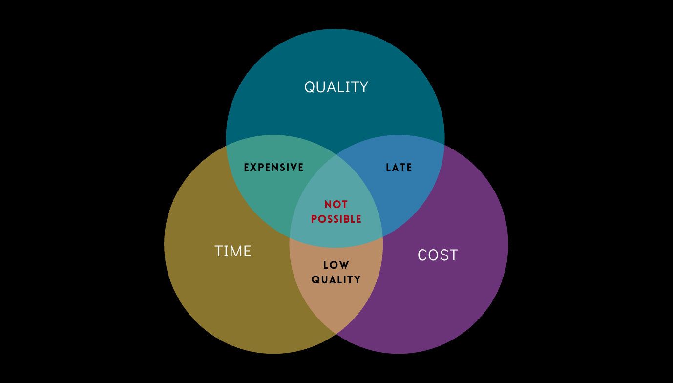 In project management, this dilemma is known as the Iron Triangle. It says you can’t achieve high quality, high speed, and low cost at the same time. You can pick two, but the third will always suffer.